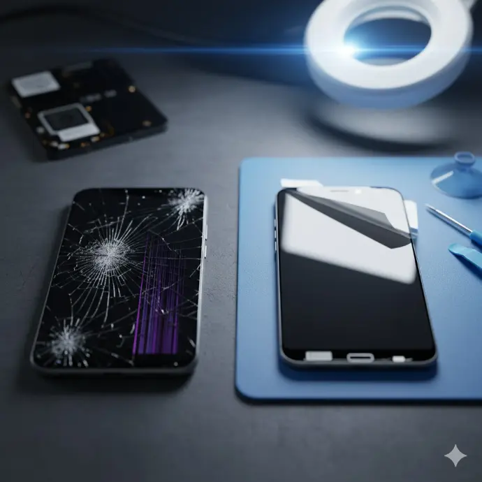 Solves Issues: Cracked or shattered glass, unresponsive touch, display abnormalities (black screen, colored lines, liquid damage inside the LCD).